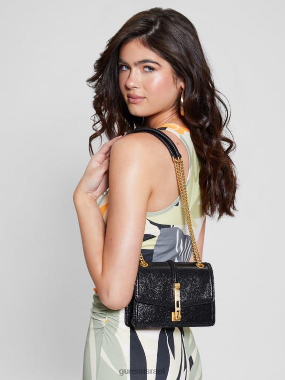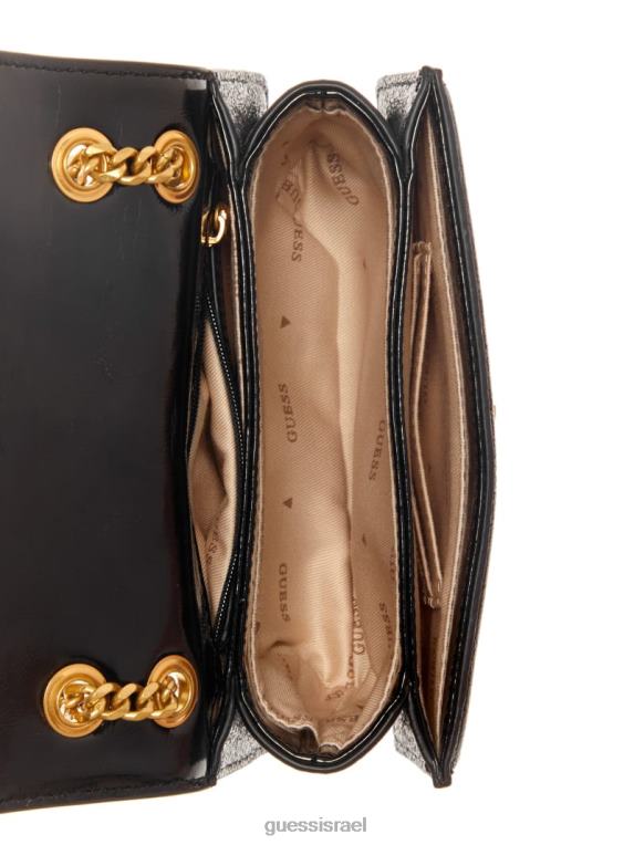 GUESS נשים Crossbody מיני להמרה מוזהבת זוהרת F8RV2920 תיקים הדפס פרחוני שחור