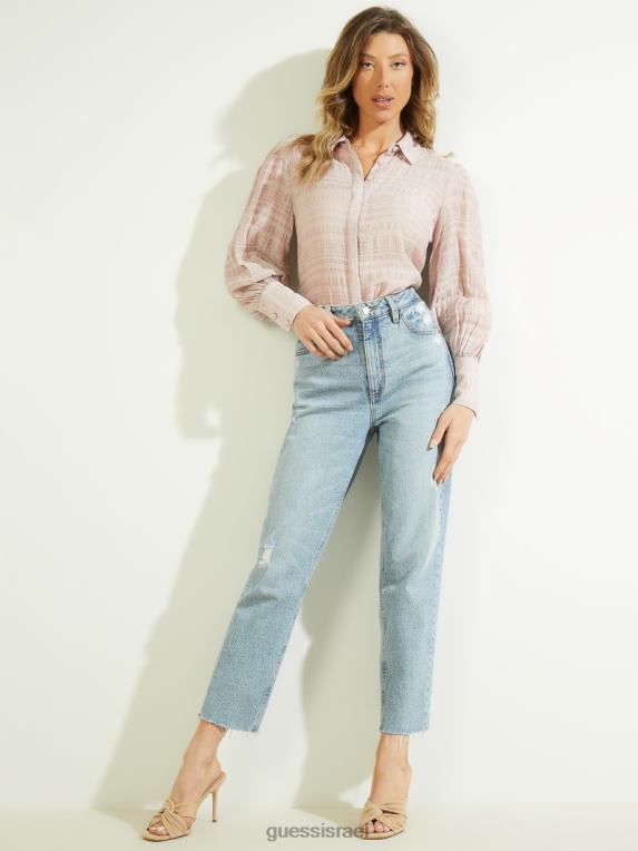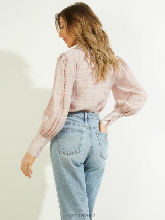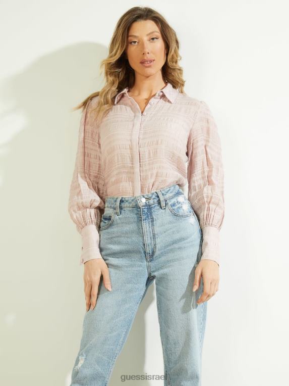 GUESS נשים rav crinkle העליון F8RV1660 לבוש לבנים ורד רב