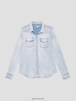 GUESS נשים rav crinkle העליון F8RV1664 לבוש aqua breeze multi