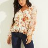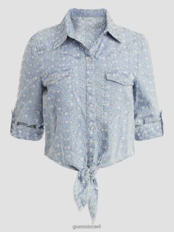GUESS נשים חולצת אדלייד אקולוגית F8RV1025 לבוש פריחת אקווארל