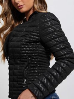 GUESS נשים מעיל מוטו מלאכותי של לביניה F8RV1925 לבוש שָׁחוֹר
