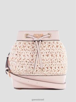 GUESS נשים שקית דלי קש סרוגה ליגוריה F8RV2960 תיקים צבע לטבול