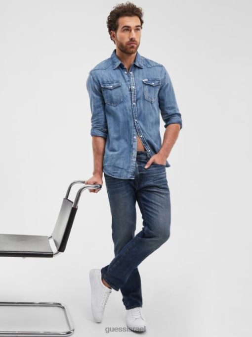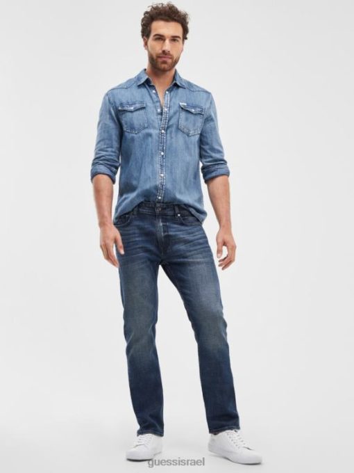 GUESS גברים ג’ינס ישר רגיל F8RV3950 לבוש שטיפת קסת דיו