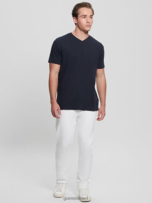 GUESS גברים חולצה אקולוגית בתערובת פשתן עם צווארון V F8RV4038 לבוש מולטי כחול חכם