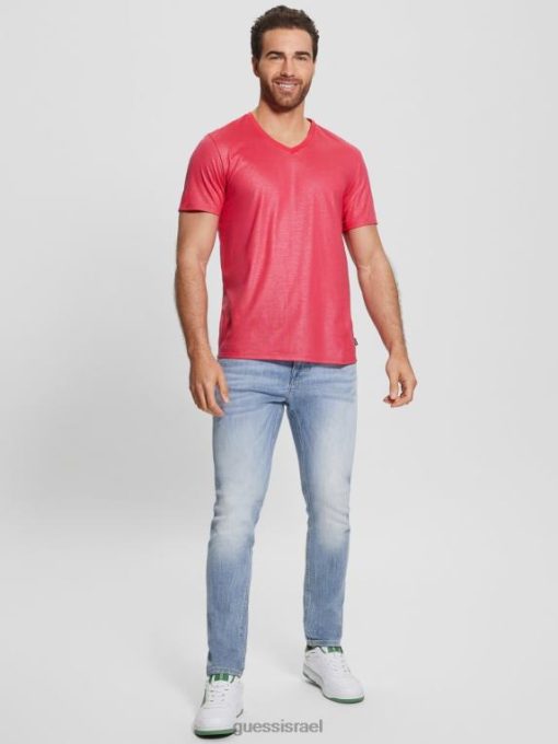 GUESS גברים חולצה עם צווארון V של מייסון yoke F8RV4057 לבוש ורוד וירטואלי
