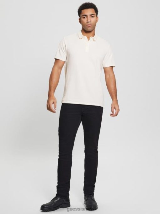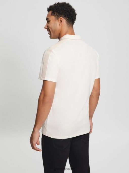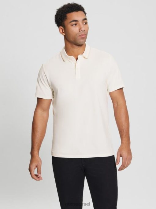 GUESS גברים חולצת פולו של פול פיקה טייפ F8RV4180 לבוש קרם וניל