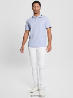 GUESS גברים חולצת פולו של פול פיקה טייפ F8RV4180 לבוש קרם וניל