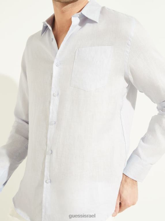 GUESS גברים חולצת פשתן של eco island F8RV4119 לבוש דרכי אוויר כחולות