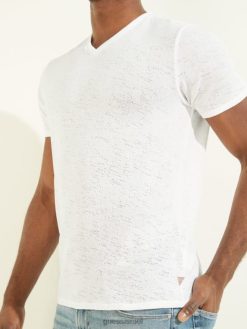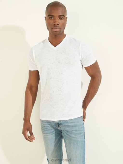 GUESS גברים טי גזה עם צווארון V F8RV4130 לבוש לבן טהור
