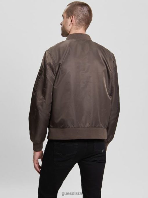 GUESS גברים מעיל טיסה מניילון F8RV4159 לבוש שוקולד חרובים