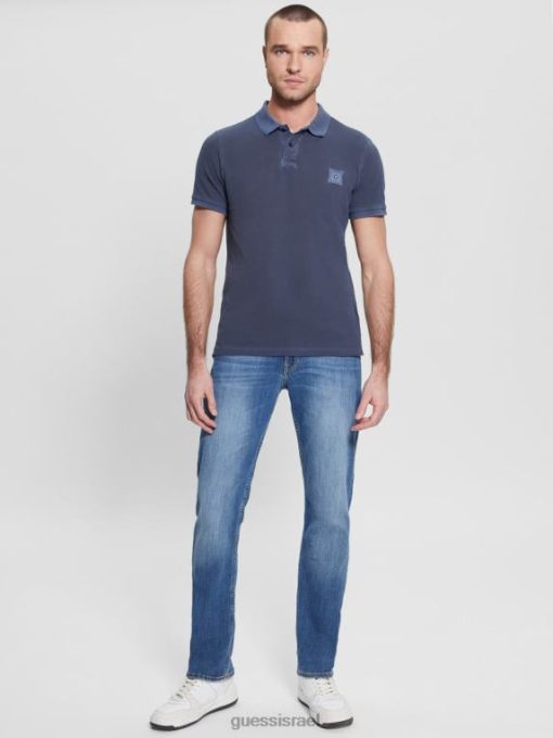 GUESS גברים פולו מכובס F8RV4161 לבוש כחול אלגנטי
