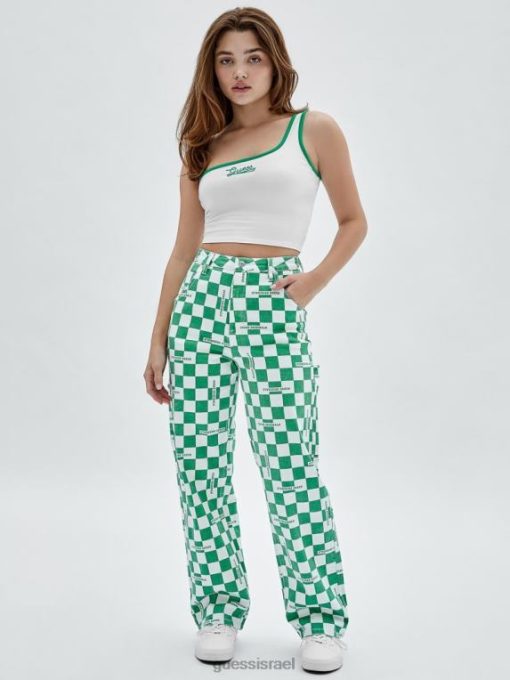 GUESS לִשְׁנֵי הַמִינִים ג’ינס נגר משובץ מקוריים F8RV197 לבוש מאצ’ה ירוק מולטי