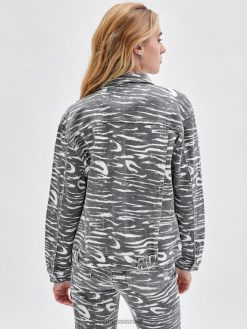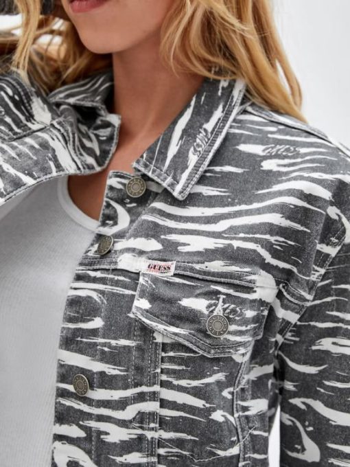 GUESS לִשְׁנֵי הַמִינִים ז’קט ג’ינס בהדפס זברה מקוריים F8RV1857 לבוש מולטי שחור ג’ט