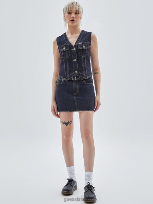 GUESS לִשְׁנֵי הַמִינִים חצאית ג’ינס עם חגורות מקוריות F8RV136 לבוש ללכת לשטוף כהה וינטג’
