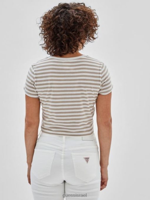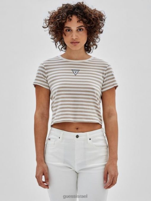 GUESS לִשְׁנֵי הַמִינִים טי תינוק עם פסים אקולוגיים מקוריים F8RV1321 לבוש פסגות לבנות מולטי