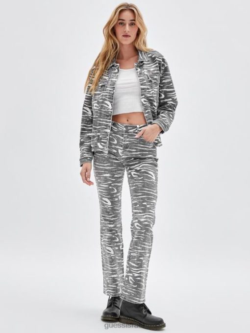 GUESS לִשְׁנֵי הַמִינִים מכנסי אתחול בהדפס זברה מקוריים F8RV177 לבוש מולטי שחור ג’ט