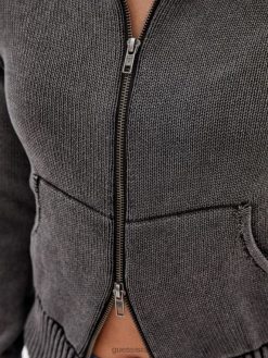 GUESS לִשְׁנֵי הַמִינִים סוודר כפול רוכסן המקורי F8RV1377 לבוש מולטי שחור ג’ט