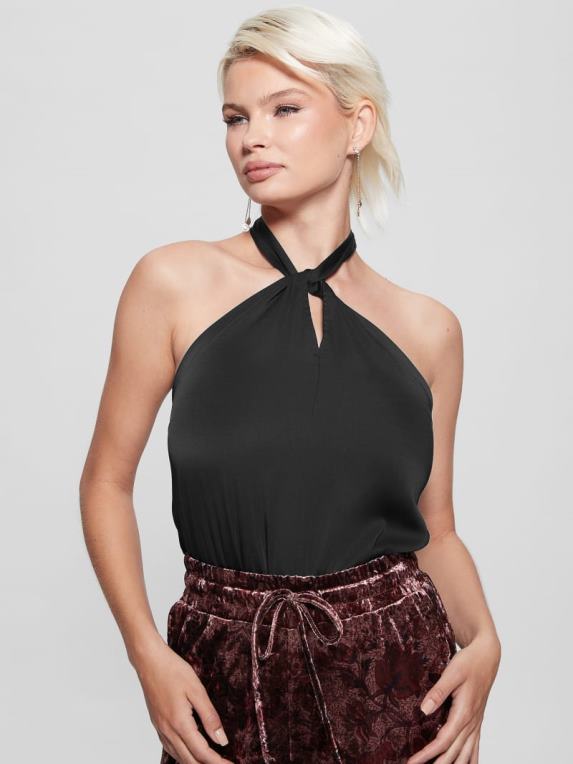 GUESS נשים בגד גוף אקולוגי הת’ר F8RV1486 לבוש שָׁחוֹר