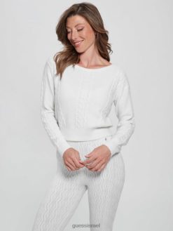 GUESS נשים סוודר סרוג בכבלים מעורב של טרזה F8RV1563 לבוש יונה לבן