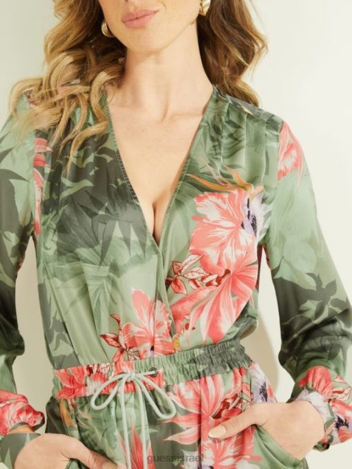 GUESS נשים בגד גוף אקו סטפניה F8RV1564 לבוש הדפס פרחים הוואי