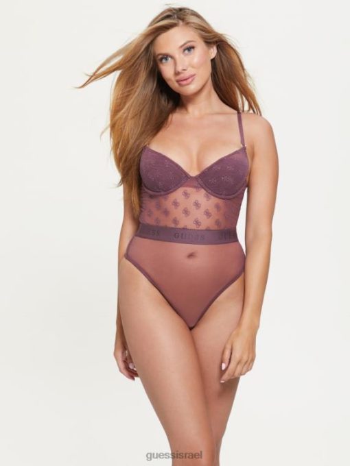 GUESS נשים בגד גוף מרשת איליין F8RV1406 לבוש סגול מינרלי