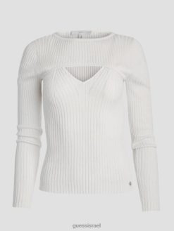GUESS נשים סוודר מגזרת eco marion בתערובת משי F8RV1491 לבוש לבן שמנת