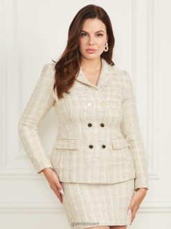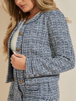 GUESS נשים בלייזר פרנסס F8RV1939 לבוש טוויד בוקולי כחול סודי