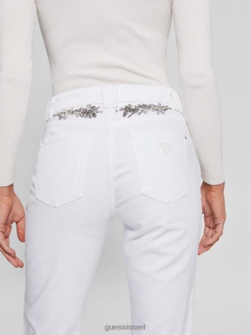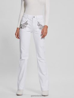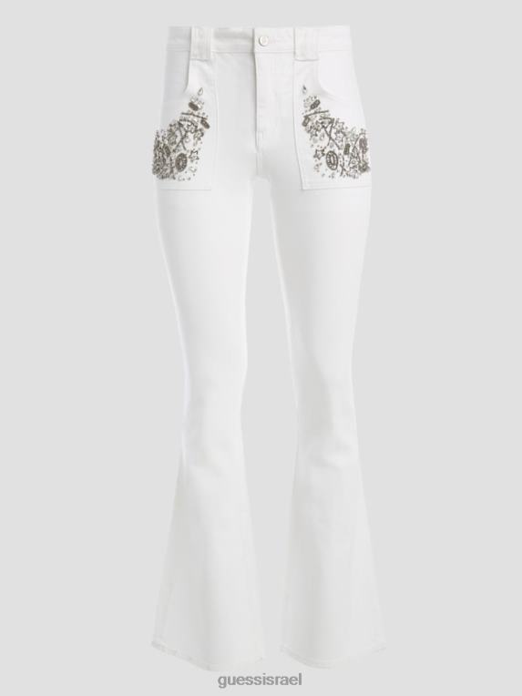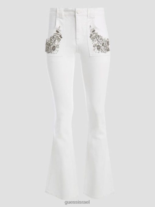 GUESS נשים ג’ינס מגפי תינוק של ריינה F8RV156 לבוש מולטי לבן טהור