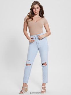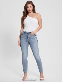 GUESS נשים ג’ינס סטרייט סקסי F8RV21 לבוש לבן טהור