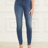 - גבוהה, יושב במותן טבעי. סקיני התאמה ורגל.