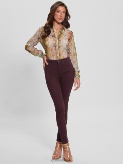 GUESS נשים ג’ינס סקיני מצופה 1981 F8RV258 לבוש גוון בורדו מולטי