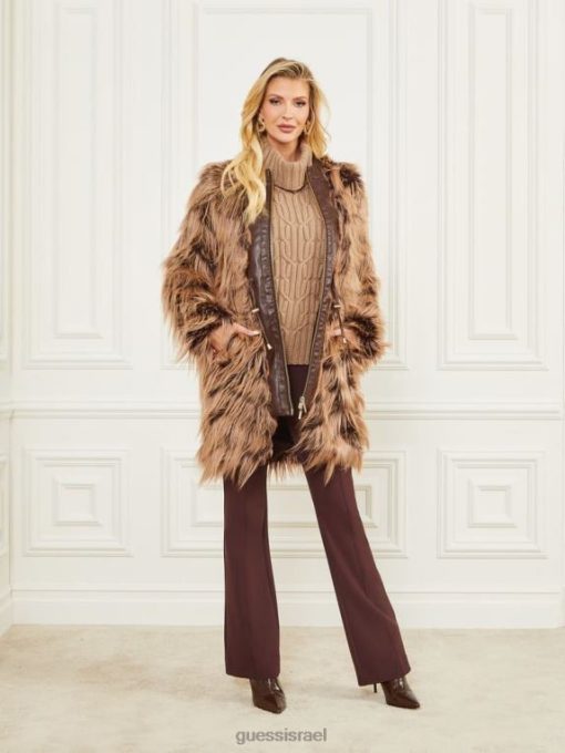 GUESS נשים דינה מעיל מדובלל F8RV1977 לבוש בורבון כהה עם קלאסי