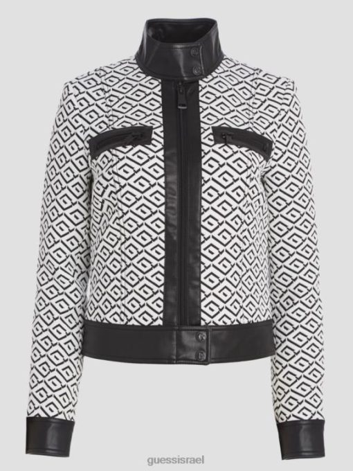 GUESS נשים ז’קט גיאומטרי של גרטה F8RV1942 לבוש לוגו גיאוגרפי jqd לבן/שחור