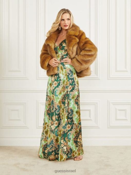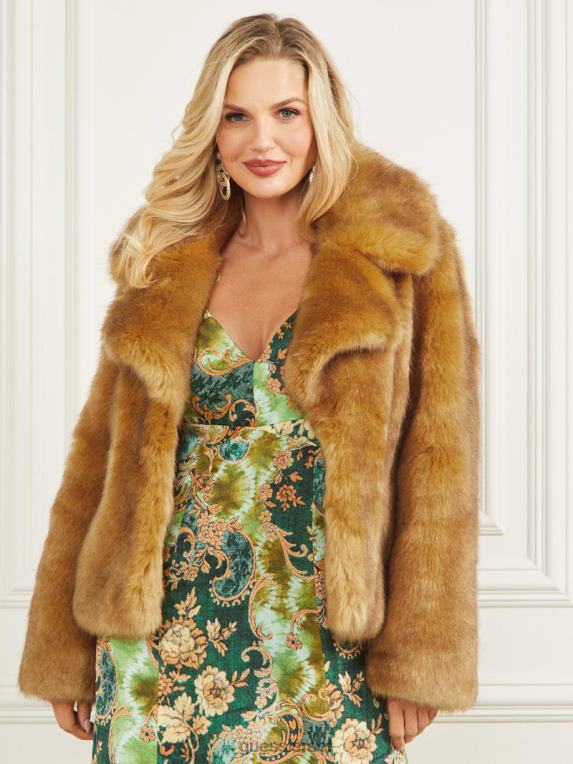 GUESS נשים ז’קט חדש עם פרווה מלאכותית של גוונדה F8RV1896 לבוש גָמָל