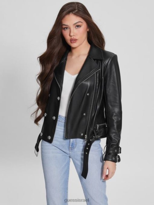 GUESS נשים ז’קט מוטו דמוי עור אוליביה F8RV1754 לבוש מולטי שחור ג’ט