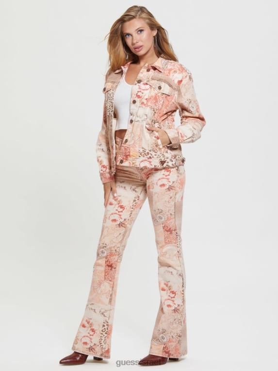 GUESS נשים ז’קט סמל פייזלי משנות ה-90 F8RV281 לבוש הדפס טלאים לתחייה