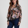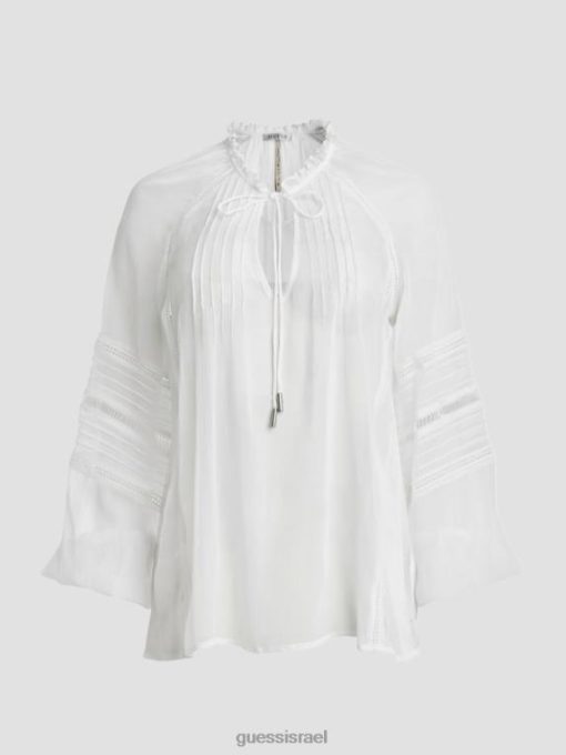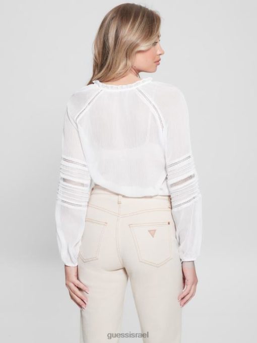 GUESS נשים חולצה שקופה עם שרוולים ארוכים F8RV1240 לבוש לבן טהור