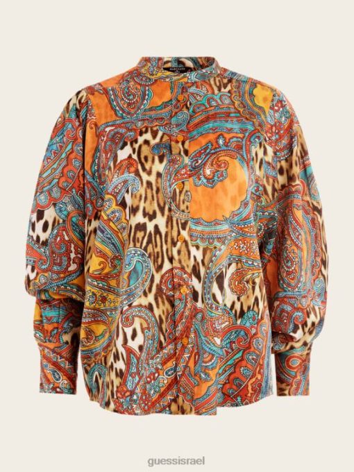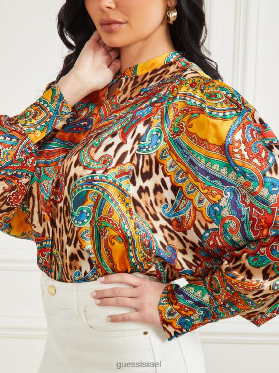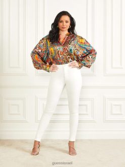 GUESS נשים חולצת איבון העולה עוף החול F8RV1585 לבוש הדפס עוף החול