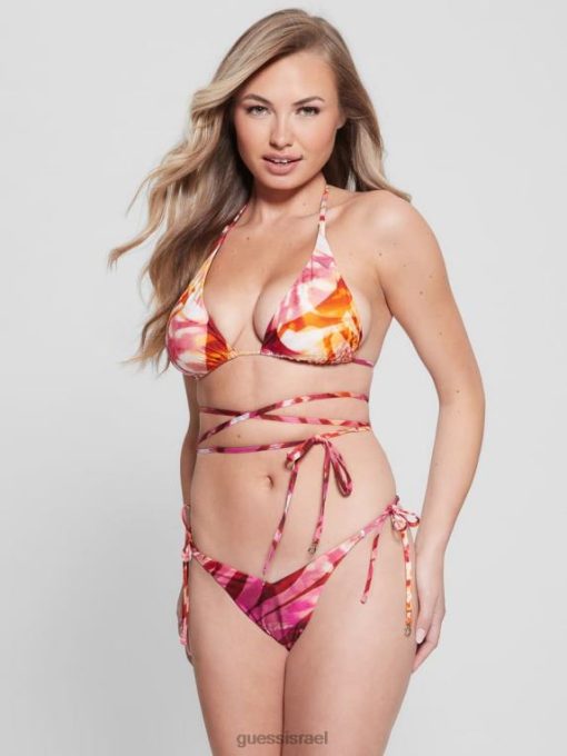 GUESS נשים חולצת ביקיני משולשת אקולוגית F8RV2568 לבוש חייתי צבעוני יותר