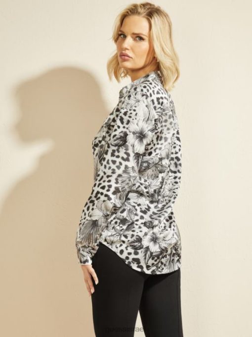 GUESS נשים חולצת אדלייד אקולוגית F8RV1025 לבוש פריחת אקווארל