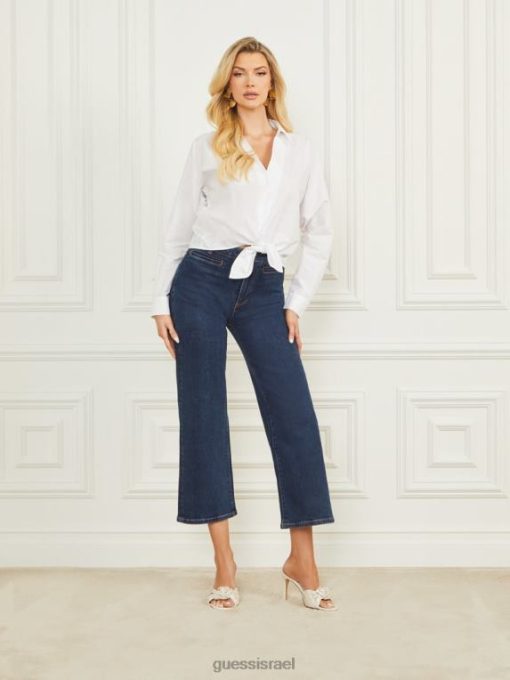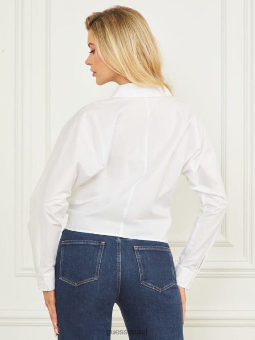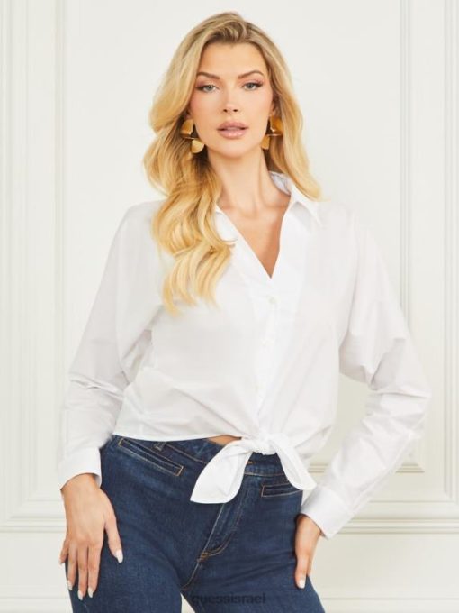 GUESS נשים חולצת טיפאני פופלין F8RV1114 לבוש בלאן פור