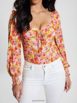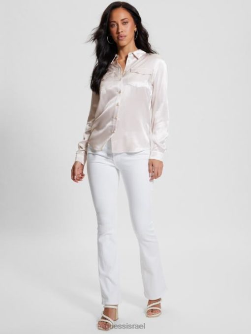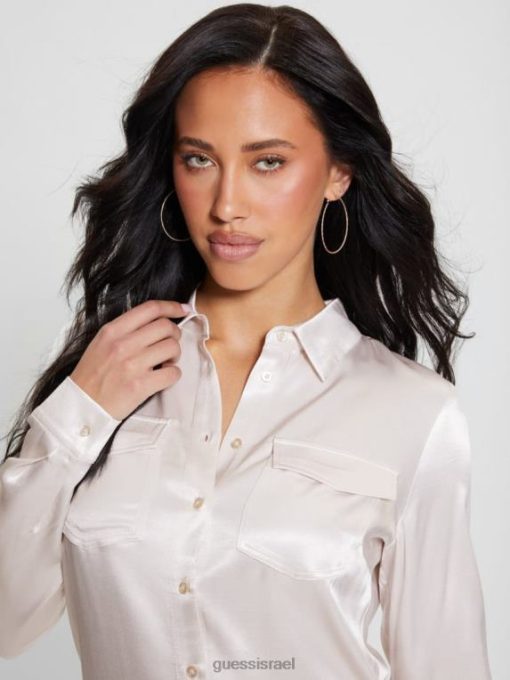 GUESS נשים חולצת סאטן אקולוגית לינדה F8RV926 לבוש אבן אילמת