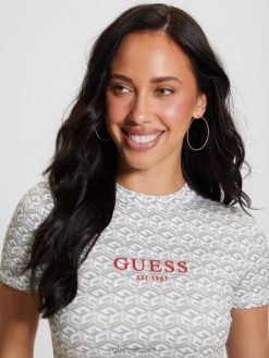 GUESS נשים חלק עליון אקטיבי g-cube F8RV1097 לבוש פס g-cube קטן אפור