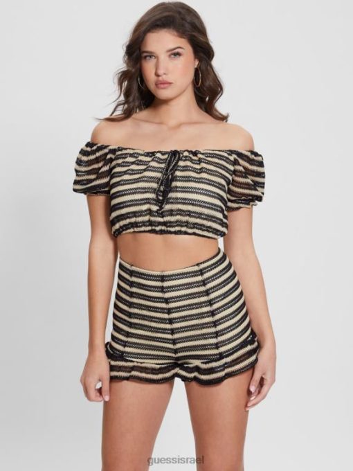 היה הראשון לכתוב סקירה “GUESS נשים חלק עליון עם שרוול נפוח רשת מאיה F8RV932 לבוש שילוב לבן שחור” לבטל