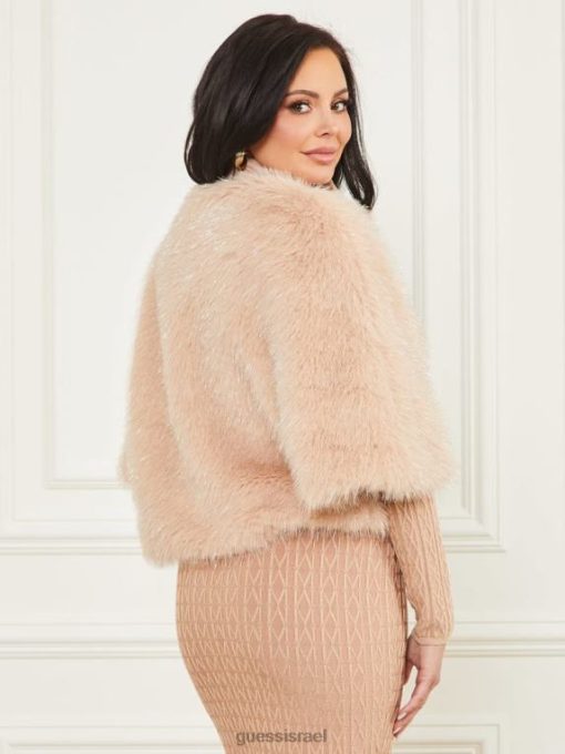 GUESS נשים חלק עליון עשוי פרווה בצבע ענבר F8RV1883 לבוש ורוד פסטל עם כסף l