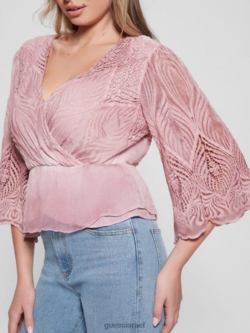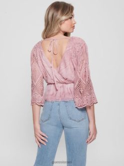 GUESS נשים חלק עליון רקום pam F8RV1481 לבוש סומק וינטג’ מולטי