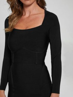 GUESS נשים חלק עליון של zaylee mirage F8RV1676 לבוש שָׁחוֹר