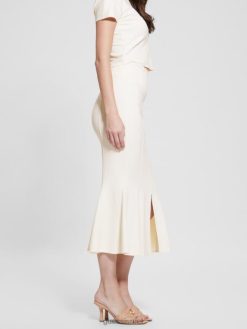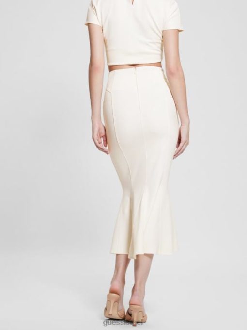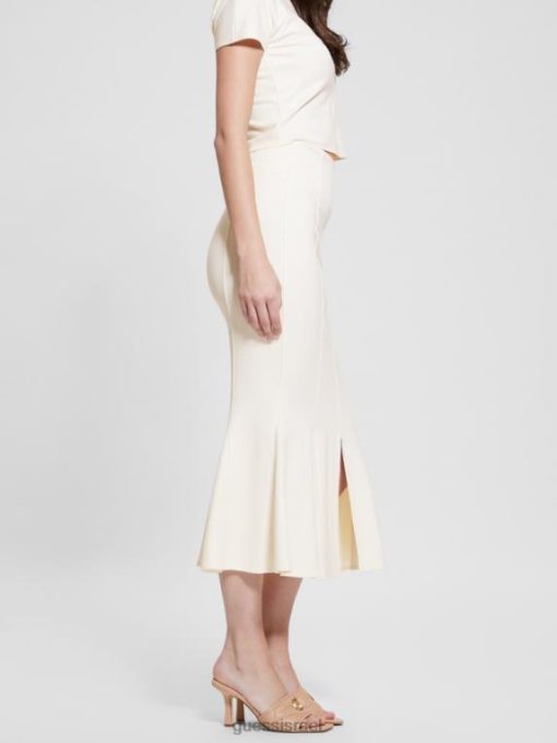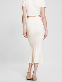 GUESS נשים חצאית לונגואט F8RV1999 לבוש לבן שמנת