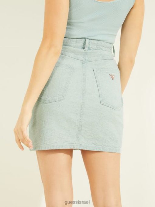GUESS נשים חצאית מידי קובייה F8RV223 לבוש קוביית צבע אקווה