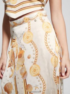 GUESS נשים חצאית מקסי של דורה סאטן F8RV2005 לבוש הדפס רב פגזים